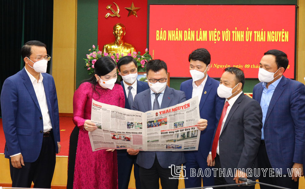 Đồng chí Bí thư Tỉnh ủy cho biết, Thái Nguyên luôn đồng hành, gắn bó với các cơ quan báo chí và được các cơ quan báo chí, trong đó có Báo Nhân Dân quan tâm thông tin, tuyên truyền toàn diện. Thay mặt lãnh đạo tỉnh, đồng chí trân trọng cảm ơn sự quan tâm của Báo Nhân Dân với tỉnh.