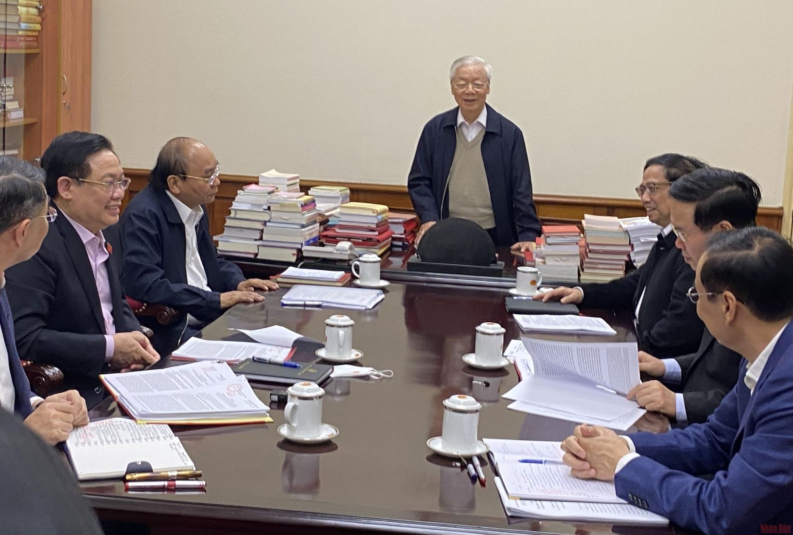 Trước tình hình thời gian tới, nước ta có thể tiếp tục đối mặt với không ít khó khăn, thách thức mới, Tổng Bí thư yêu cầu phải nắm chắc và dự báo đúng tình hình, đề ra chủ trương phải đúng trên tinh thần kiên định những vấn đề có tính nguyên tắc, tuyệt đối không được nghiêng ngả, đồng thời phải ứng phó linh hoạt, chỉ đạo xử lý hiệu quả các vấn đề đặt ra. Muốn làm được như vậy phải tiếp tục tăng cường sự đoàn kết, thống nhất, phối hợp nhịp nhàng trong lãnh đạo, chỉ đạo và tổ chức thực hiện. Vừa chỉ đạo tốt các công việc hàng ngày vừa tập trung chuẩn bị tốt Hội nghị Trung ương 5 và kỳ họp thứ 3 Quốc họi khóa XV.