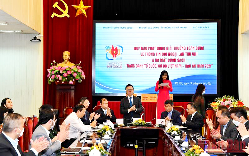 Sau 7 mùa giải thành công, sáng 19/4, tại Hà Nội, Ban Tuyên giáo Trung ương, Ban Chỉ đạo Công tác thông tin đối ngoại, Báo Nhân Dân và các cơ quan liên quan tổ chức họp báo phát động Giải thưởng toàn quốc về thông tin đối ngoại lần thứ VIII và ra mắt cuốn sách “Rạng danh Tổ quốc, Cơ đồ Việt Nam - Dấu ấn 2021”.