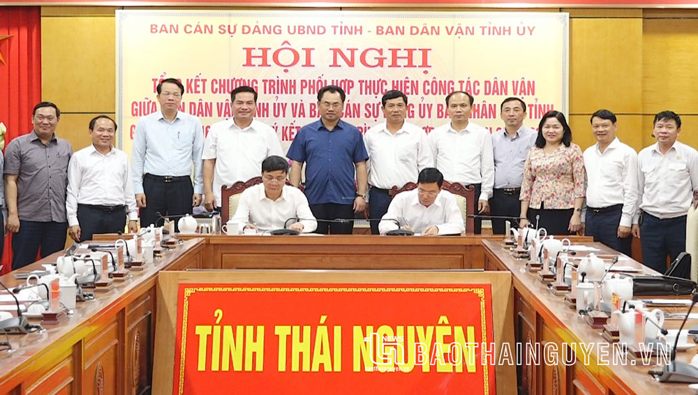 Tại Hội nghị, thay mặt Ban Cán sự đảng UBND tỉnh và Ban Dân vận Tỉnh ủy, các đồng chí Ủy viên Ban Thường vụ Tỉnh ủy: Đặng Xuân Trường, Phó Bí thư Ban Cán sự đảng, Phó Chủ tịch Thường trực UBND tỉnh; Dương Văn Tiến, Trưởng Ban Dân vận Tỉnh ủy ký kết Chương trình phối hợp giữa 2 cơ quan về công tác dân vận giai đoạn 2022-2026, với những nội dung trọng tâm như: Phối hợp tham mưu cụ thể hóa và sơ kết, tổng kết các chủ trương, nghị quyết của Đảng về công tác dân vận; đẩy mạnh các hoạt động tuyên truyền, giáo dục nâng cao nhận thức về ý nghĩa, tầm quan trọng của công tác này; thực hiện hiệu quả chương trình tổng thể cải cách hành chính nhà nước; đẩy mạnh phong trào “Dân vận khéo” gắn với thực hiện các phong trào thi đua yêu nước…