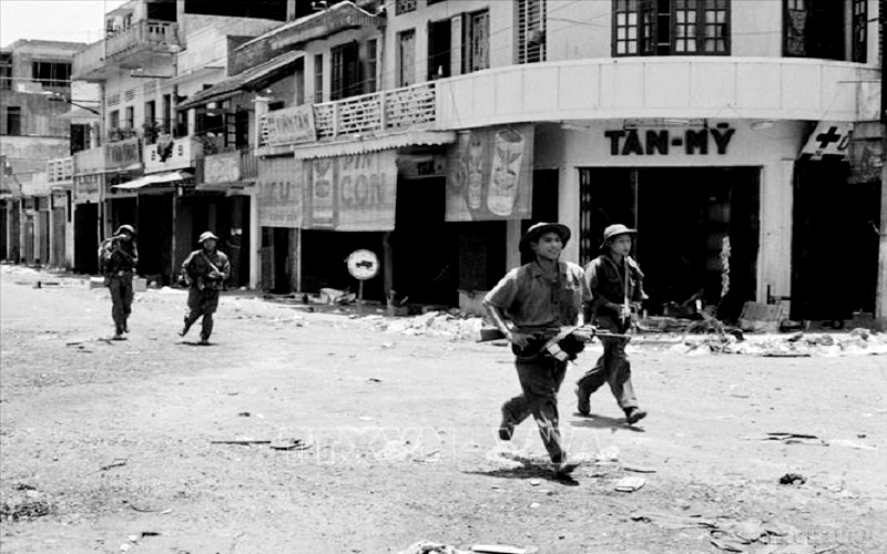 Các chiến sĩ phân đội 3 kiên cường bám trụ diệt địch, bảo vệ từng tấc đất trong thị xã Quảng Trị. Ảnh: Phạm Hoạt/TTXVN