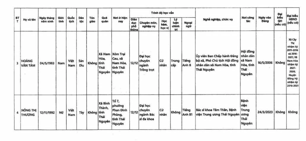 Dưới đây là danh sách 20 người ứng cử đại biểu Quốc hội khóa XVI tại tỉnh Thái Nguyên: