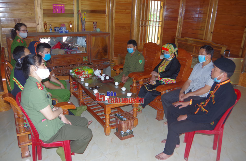 Lực lượng Công an tỉnh và huyện Võ Nhai tuyên truyền đến người dân xóm Khuân Đã, xã Liên Minh về công tác đấu tranh phản bác những quan điểm sai trái, phản động của các thế lực thù địch. Ảnh: T.L