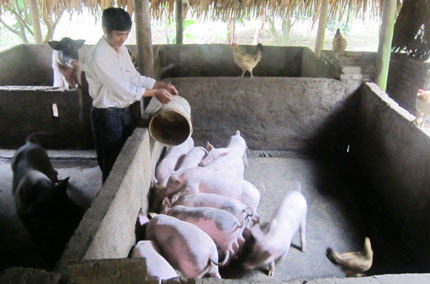 Theo chân cán bộ nông nghiệp xã, chúng tôi đến thăm mô hình kinh tế của đảng viên trẻ Ma Văn Chấm, một hộ nghèo sau 2 năm thực hiện mô hình chăn nuôi lợn, gà thả vườn và làm đậu phụ đã trở nên khấm khá. Anh Chấm khoe: “Gia đình tôi có hơn 7 sào ruộng, trước đây chỉ biết độc canh 2 vụ lúa nên cuộc sống gặp nhiều khó khăn. Được kết nạp Đảng năm 2009, tôi được sự động viên, giúp đỡ của Chi bộ, nên đã mạnh dạn vay vốn ngân hàng để đầu tư chăn lợn thịt và gà thả vườn. Ngoài ra, tôi còn đầu tư thêm máy nghiền bột để sản xuất đậu phụ, mỗi ngày làm từ 15 đến 20 kg đỗ tương phục vụ nhu cầu bà con trong vùng”. Trừ chi phí, mỗi năm, mô hình kinh tế của gia đình anh Chấm cho thu nhập hơn 70 triệu đồng. Không những vậy, anh còn tích cực giúp đỡ các gia đình trong xóm bằng con giống và kỹ thuật chăn nuôi. Cùng với anh Chấm, xã Trung Hội đã có nhiều đảng viên mạnh dạn thử nghiệm các mô hình kinh tế mới, đạt hiệu quả kinh tế cao như: Mô hình chăn nuôi lợn rừng của đảng viên Hà Chính Nghĩa, xóm Quán Vuông. Từ hơn chục con lợn giống ban đầu, đến nay, gia đình chị Nghĩa đã có trên 50 con lợn, kết hợp với buôn bán thức ăn gia súc cho thu nhập hơn 100 triệu đồng/năm; mô hình trang trại nuôi hơn 2 nghìn con gà Lai Mía của đảng viên Nguyễn Minh Hiển, xóm Hoàng Hanh cho thu nhập hơn 100 triệu đồng mỗi năm…