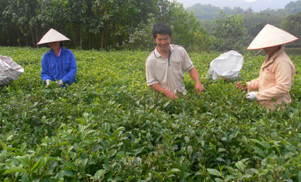 Anh vui vẻ nói mà như khoe với chúng tôi: “Giờ đất đã tơi xốp lắm, chè đang phát triển rất tốt, chất lượng được nâng lên đáng kể”. Nhận thấy tác dụng của các loại phân bón có nguồn gốc hữu cơ đối với sự phát triển bền vững của cây chè, anh thường đặt mua số lượng lớn phân chuồng từ các trang trại quanh vùng đem về ủ mục (hiện gia đình cũng đang ủ khoảng 7 tấn), rồi kết hợp với phân vi sinh bón cho chè. Khi bón phân, anh thường đào hố cạnh gốc chè rồi thả phân xuống và lấp đất cẩn thận nên cây dễ hấp thụ mà lại không bị rửa trôi. Ngoài việc kiên trì cải tạo đất, anh Dương còn tích cực san sườn đồi dốc thành những bãi bằng đồng mức, đắp bờ bao nhằm ngăn đất màu và giữ ẩm cho chè. “Đất không phụ công người”, mỗi lứa chè gia đình anh Dương thu được từ 3 đến 3,5 tạ chè búp khô, một năm cũng xấp xỉ 2 tấn chè, trừ chi phí còn lãi trên 200 triệu đồng và hứa hẹn còn tăng cao trong những năm tới.