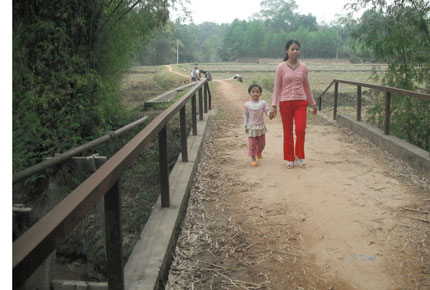 Ông Bình cho biết thêm, không chỉ có ngôi đình, trong những năm qua, nhân dân Kha Nhi đã tích cực đóng góp công sức, tiền của cùng với nhà nước xây dựng nhiều công trình phúc lợi khác. Đầu tiên phải kể đến là công trình cầu Cửa Bến, được xây dựng năm 2003 với giá trị gần 50 triệu đồng, do nhân dân đóng góp. Trước đây, mỗi khi trời mưa to, nước của hai con suối chảy quanh xóm dâng cao, khiến xóm bị biến thành “ốc đảo” làm cho việc đi lại rất khó khăn. Cầu Cửa Bến cùng với cầu Bãi Mạ (được xây dựng bằng 100% vốn nhà nước) đã chấm dứt nghịch cảnh đó. Tiếp đó là “con mương bê tông” dẫn nước tưới tiêu cho một nửa diện tích đất canh tác của xóm. Con mương này được xây dựng và đưa vào sử dụng năm 2007 có chiều dài gần 1,5km với tổng vốn đầu tư 180 triệu đồng, trong đó 50% giá trị công trình là của nhân dân.