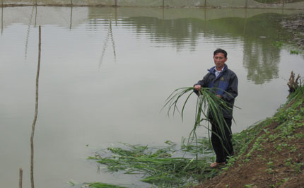 Không dừng lại ở việc đi đầu trong trồng chè cành, chăn nuôi lợn nái ngoại ở địa phương, năm 2008, anh Định còn xin phép chính quyền địa phương nắn dòng suối Cái cạnh nhà để có diện tích chăn thả thuỷ sản. Đưa chúng tôi ra thăm khu vực ao thả cá, anh Định kể chuyện: Nhìn dòng suối Cái chảy cong queo quanh nhà giống hình cái thúng, tôi lên gặp các anh lãnh đạo trên xã, huyện để xin cải tạo dòng chảy của con suối cho thẳng mà không ảnh hưởng gì đến dòng chảy của nước. Rồi từ đó mình có diện tích chăn thả thuỷ sản, đưa kinh tế phát triển. Được sự chấp thuận của lãnh đạo cấp trên, trong 3 tháng trời, tôi đưa máy múc vào đào sâu 3 m, chiều rộng trên 10m, đắp đập chặn dòng nước chảy không cho chảy vào như trước mà bắt ngay vào hướng dòng chảy mới khơi và nhập vào dòng chảy như cũ. Sau khi nắn suối, gia đình anh Định có được một cái ao rộng với diện tích khoảng 2 mẫu. Được biết, đối với diện tích canh tác mới này, gia đình anh Định cấy lúa lai vào vụ chiêm, còn vụ mùa thì bắt đầu thả cá với các giống cá trắm, cá chép... Trong 3 năm liên tiếp từ 2009 đến nay, mỗi năm diện tích này cũng cho gia đình anh thu nhập thêm trên 1 tấn cá thương phẩm...
