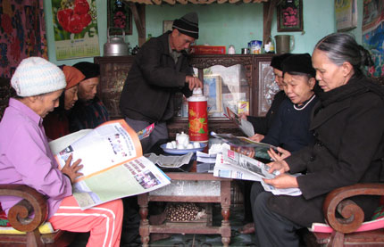 Chúng tôi đến với Chi hội Người cao tuổi xóm Cộng Hòa, xã Động Đạt (Phú Lương) vào đúng ngày đọc báo nhóm của Chi hội. Trong căn nhà của hội viên Trịnh Thị Tỉnh, các cụ đang lật giở những trang báo. Người nào có thể đọc được thì tự chọn báo đọc, cụ nào mắt kém không đọc được thì được Nhóm trưởng đọc cho nghe. Báo mà các cụ đọc gồm nhiều loại báo như: Người cao tuổi, Nhân dân, Lao động, Thái Nguyên… Bà Nguyễn Thị Trinh, Nhóm trưởng 1 nhóm đọc báo cho biết: Báo này do các cháu ngoài xã cung cấp, thấy chúng tôi hay đọc nên xã thường gom báo cũ gửi vào. Hoạt động đọc báo này được chúng tôi duy trì đã gần chục năm nay. Cứ mỗi tuần 2 lần, thứ 5 là ngày đọc báo nhóm, Chi hội được chia ra làm 2 nhóm: Nhóm trong và nhóm ngoài, mỗi nhóm đọc báo ở 1 nơi để các cụ tiện đi lại, đến thứ 6 toàn chi hội lại tập hợp lại ở nhà văn hóa xóm để đọc cho nhau nghe. Qua đó, giúp chúng tôi hiểu thêm về xã hội hiện đại, có thêm kiến thức sống, sinh hoạt, tự biết chăm sóc sức khỏe cho bản thân…