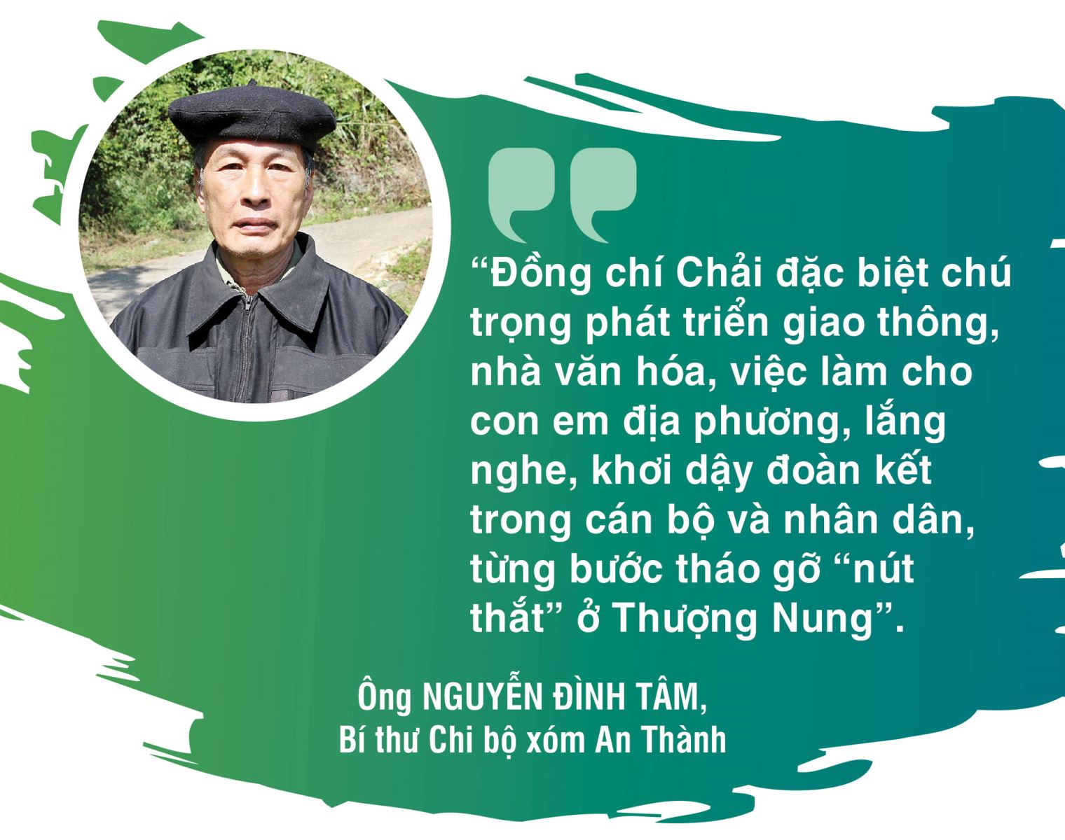 Chúng tôi lên Thượng Nung khi Chủ tịch UBND xã Lương Thị Mỹ Chải đang chủ trì một cuộc họp với các trưởng xóm, bí thư chi bộ để bàn về việc duy tu, sửa chữa các công trình giao thông. Là xã vùng cao, địa hình núi đá, đường giao thông có nhiều khúc quanh, cua “tay áo”, mép đường xói mòi, cỏ cây lâu không phát dọn nên mọc um tùm gây ảnh hưởng đến việc đi lại của người dân. Sau khi nghe cán bộ các xóm ý kiến, chị Chải kết luận: Việc này chúng ta phải hoàn thành trước Tết Nguyên đán, vì vậy các xóm phải đoàn kết, phân công nhau vệ sinh đường, tu sửa lại những đoạn nguy hiểm. Mình tự làm được việc gì phải làm hết khả năng, không nên ỷ lại, gắng hết sức mà không thể mới đề xuất lên cấp trên.