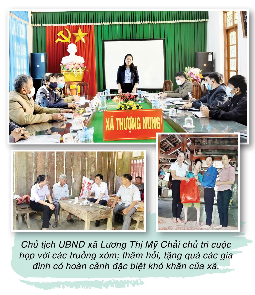Cán bộ, công chức xã được phân công theo dõi, phụ trách các xóm, thường xuyên nắm bắt tình hình, lắng nghe nguyện vọng của người dân. Chị thực hiện cơ chế giao việc, tăng cường giám sát; tổ chức các cuộc đối thoại với người dân. Cùng với đó, chị mạnh dạn đề xuất huyện đầu tư, hỗ trợ hệ thống máy tính, trang thiết bị, ứng dụng công nghệ thông tin trong công việc, niêm yết công khai bộ thủ tục hành chính tại trụ sở UBND. Hiện nay, Thượng Nung là một trong những xã đi đầu huyện về cải cách thủ tục hành chính.