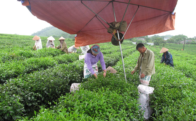 Những ngày đầu Xuân đến xóm Cà Phê 1, chúng tôi ngỡ ngàng khi xóm khoác lên mình một màu áo mới. Đường làng, ngõ xóm được trải bê tông rộng rãi, sạch sẽ đến tận các nương chè, tạo điều kiện cho việc sản xuất và giao thương của người trồng chè. Những nương chè tua tủa búp non sau khi được tắm mưa Xuân. Ghé vào một nương chè mơn mởn đang có người thu hái, bác Phạm Hồng Vinh thoắt thoắt tay hái chè vừa tiếp chuyện chúng tôi: Với sự tuyên truyền, vận động và hỗ trợ xóm, xã tôi đã chuyển đổi gần 4.000m2 diện tích giống chè trung du sang giống chè cành cho hiệu quả năng suất cao. 100% diện tích chè của gia đình tôi sản xuất theo quy trình VietGAP. Không riêng nhà tôi, đa phần các gia đình trong xóm đều sản xuất chè an toàn theo đúng quya trình và có ý thức bảo vệ môi trường, nâng cao năng suất, đảm bảo cuộc sống cho mọi người. Đến nay gần như 100% số hộ đã đưa các giống chè mới vào sản xuất thay thế giống chè trung du năng suất thấp, hay bị sâu bệnh, nhờ vậy hiệu quả kinh tế mang lại tương đối cao. Như gia đình tôi, trừ chi phí sản xuất mỗi năm tiết kiệm được gần 100 triệu đồng từ làm chè.