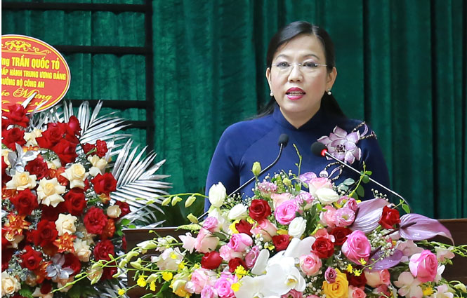 Phát biểu tại Đại hội, đồng chí Bí thư Tỉnh uỷ đã ghi nhận những kết quả mà Đảng bộ huyện đã đạt được trong nhiệm kỳ qua. Bên cạnh đó, đồng chí đề nghị, Đại hội dành nhiều thời gian thảo luận, phân tích rõ nguyên nhân hạn chế tìm giải pháp khắc phục trong thời gian tới. Đặc biệt, Đảng bộ cần xác định rõ tiềm năng, lợi thế của huyện, đồng thời bám sát vào các mục tiêu của tỉnh để lựa chọn nhiệm vụ trọng tâm. Trong đó, cần tiếp tục đẩy mạnh chuyển dịch cơ cấu kinh tế; đẩy mạnh phát triển công nghiệp với công nghệ hiện đại, thân thiện với môi trường; phát triển sản xuất tiểu thủ công nghiệp và làng nghề ở khu vực nông thôn gắn với phục vụ thị trường trong nước và xuất khẩu; đẩy mạnh phát triển nông nghiệp theo hướng sản xuất an toàn, hữu cơ, nông nghiệp ứng dụng công nghệ cao…phát huy tiềm năng của các tài nguyên di sản văn hóa và thiên nhiên để phát triển du lịch. Giải quyết tốt các vấn đề xã hội, nâng cao đời sống vật chất và tinh thần của nhân dân.