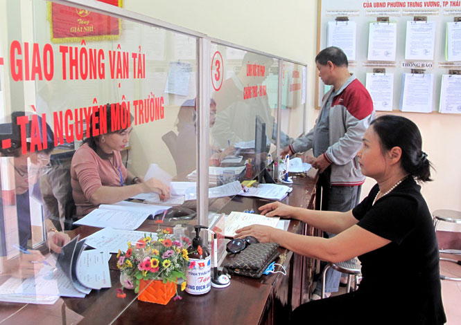 Nhân dân đến làm các thủ tục chứng thực tại bộ phận “một cửa” của phường Trưng Vương. Ảnh: T.H