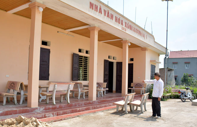 Nhà văn hóa thôn Thượng vụ 1, xã Thành Công đang tiến hành cải tạo, bổ sung ghế đá để phục vụ nhu cầu sinh hoạt tập thể của người dân.