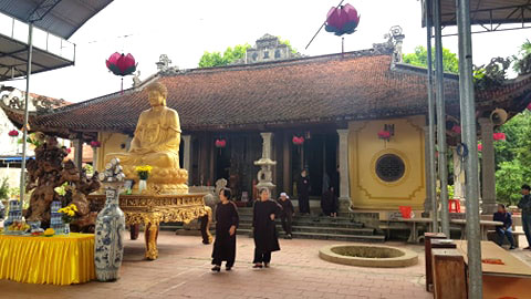 Đi dạo một vòng chúng tôi nhận thấy ngôi chùa đã được tôn tạo, tu bổ song vẫn giữ nguyên thiết kế theo bố cục kiểu chữ Đinh (丁) gồm 1 nếp nhà tiền đường và nhà hậu cung, phần vì kèo cột cái, cột quân đều được làm bằng gỗ. Ngoài các hạng mục trên, trong ngôi nhà sàn trước sân chùa đặt ban thờ Đại tướng Võ Nguyên Giáp. Người dân, các phật tử đến sinh hoạt tâm linh tại chùa đều thắp hương tưởng nhớ người anh cả của Quân đội Nhân dân Việt Nam.