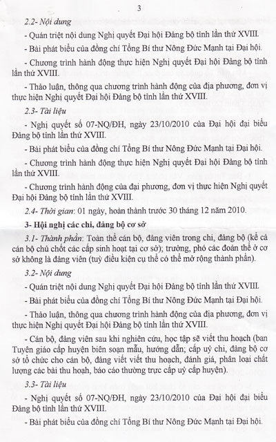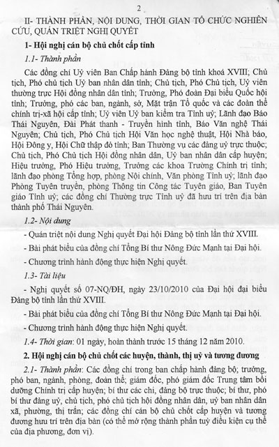 Ngày 30 tháng 11 năm 2010, Tỉnh ủy Thái Nguyên đã ban hành Kế hoạch Nghiên cứu, quán triệt, tuyên truyền và tổ chức thực hiện Nghị quyết Đại hội Đảng bộ tỉnh Thái Nguyên lần thứ XVIII. Báo Thái Nguyên điện tử xin đăng toàn văn Kế hoạch này.