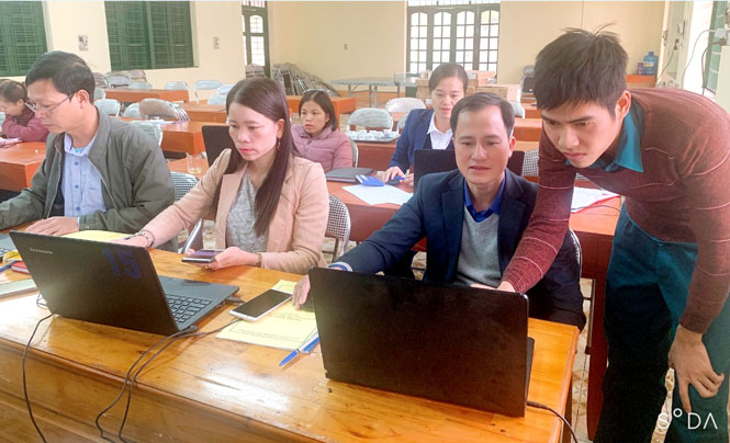 Sở Thông tin - Truyền thông phối hợp với Viễn thông Thái Nguyên tổ chức tập huấn, hướng dẫn các cán bộ ở xã La Bằng (Đại Từ) sử dụng các phần mềm chính quyền số của xã. Ảnh: T.H