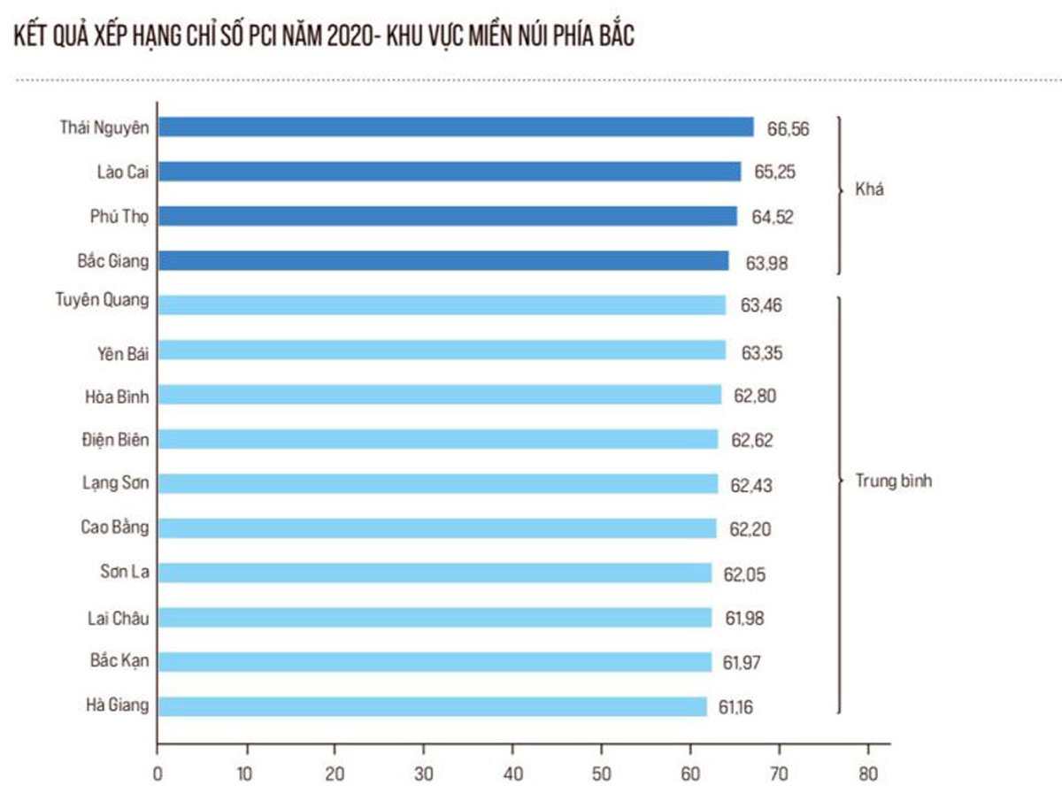 Năm 2020, Thái Nguyên xếp 11/63 tỉnh, thành phố của cả nước về chỉ số xếp hạng PCI với 66,56 điểm (tăng hơn 1 hạng so với năm 2019) và là địa phương có chỉ số xếp hạng PCI dẫn đầu trong khu vực miền núi phía Bắc.