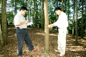 Tiếp chúng tôi trong căn nhà sàn rộng rãi, ông Triệu Tiến Hiện, 42 tuổi, người dân tộc Dao hồ hởi “khoe” vừa mới tiếp một người khách đến để đặt mua lại diện tích keo đã trồng từ năm 2002. Nhưng, ông không bán mà để dành cho xưởng bóc gỗ xuất khẩu của gia đình. “Chỉ trong năm nay, tôi sẽ thu về cả trăm triệu đồng từ rừng” - Ông nói. Để minh chứng cho lời mình, ông Hiện đưa chúng tôi ra rừng keo của gia đình. Trên diện tích 1,6 ha, hơn 3 nghìn cây keo 7 năm tuổi chuẩn bị cho thu hoạch được chăm sóc chu đáo và đốn tỉa gọn gàng. Trung bình, mỗi chu vi cây keo đạt từ 40 đến 60 cm tương đương với khoảng 0,1 m3 gỗ mỗi cây. Tính sơ sơ với giá thị trường từ 400 đến 600 nghìn đồng/m3 gỗ keo mua tại rừng thì với hơn 3,2 nghìn cây keo, ông Hiện đã thu về trên dưới 160 triệu đồng.
