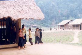 Cùng Hiệu trưởng và thầy giáo chủ nhiệm lớp 9A Phạm Đình Sỹ, chúng tôi lội suối, vượt dốc đến nhà Triệu Thị Hoa, xóm Nà Lay vận động em ra lớp. Tuy là xóm gần nhất so với các xóm khác, nhưng cách Trường gần 7 km. Nhà Hoa chỉ có 2 chị em ở nhà, bố mẹ đi Khau Vàng đẽo nhựa trám bán để mua ngô ăn qua ngày. Thấy thầy cô đến tận nhà, Hoa chỉ biết khóc: “Nhà em không có ai đi nương, bố mẹ bắt em phải nghỉ học”. Bà nội Hoa là cụ Bàn Thị Ba bảo: “Hôm qua có đứa cùng xóm đến rủ nó đi học, nhưng mẹ nó không cho đi, vì không có ai làm nương giúp”. Nhà Hoa có 4 chị em, giờ 2 đã bỏ học. Cái đói, cái nghèo níu chân cái chữ đến với các em.