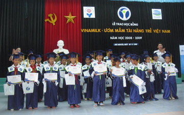 Đây là năm học thứ 6 Công ty Cổ phần sữa Việt Nam VINAMILK tổ chức trao học bổng cho học sinh tiểu học có thành tích cao trong các kỳ thi học sinh giỏi, kỳ thi văn hoá, thể thao và những học sinh có hoàn cảnh đặc biệt khó khăn vượt khó học giỏi.