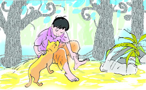 ...Jim huýt sáo gọi Tige. Con chó ve vẩy đuôi chạy tới. Rồi cả chủ và chó vào rừng. Jim ngồi cạnh suối và cười một mình. Cậu gọi: "Đến đây Tige!". Tige chạy lại, Jim xoa đầu nó và nói:" Cảm ơn mày! Mày thật tốt!".