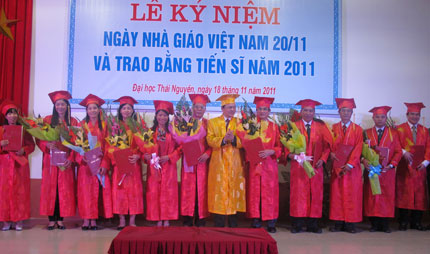 Ngày 18-10, tại Trung tâm học liệu - Đại học Thái Nguyên, Đại học Thái Nguyên (ĐHTN) đã tổ chức Lễ kỷ niệm Ngày nhà giáo Việt Nam (20-11) và trao bằng tiến sỹ năm 2011 cho cán bộ, giảng viên của toàn Đại học.