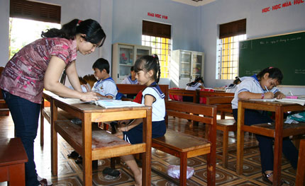 Qua tìm hiểu chúng tôi được biết, vấn đề chăm lo giáo dục cho con em của người dân trên đảo được lãnh đạo và các đoàn thể của thị trấn rất quan tâm. Tuy nhiên, do điều kiện thực tế về nguồn nhân lực giáo viên chưa có đủ nên công tác giáo dục trên đảo còn nhiều điều bất cập. Hiện, ở đảo Trường Sa chỉ có một giáo viên tiểu học, để phụ thêm việc giảng dạy cho học sinh, UBND thị trấn đã cử thêm 2 cán bộ kiêm nhiệm để duy trì lớp học vào các buổi chiều và dạy tiếng Anh, vi tính cho học sinh. Đây chỉ là biện pháp tình thế bởi hiện nay thị trấn chưa thể bố chí được thêm giáo viên. Trao đổi với chúng tôi, cô giáo Bùi Thị Nhung cho biết cô dạy học ở đây đã được 4 năm rồi. Việc phải dạy nhiều học sinh khác lớp nhau trong cùng một phòng học khiến cô gặp không ít khó khăn. Để có thể truyền đạt được đầy đủ kiến thức cho các em, cô phải đọc rất kỹ giáo án trước khi lên lớp, đồng thời phân bổ thời gian hợp lý để các em cùng tiếp thu bài một cách hiệu quả. Theo nhận xét của cô Nhung, tất cả học sinh ở đây đều tiếp thu được bài giảng, tuy nhiên việc dạy và học như vậy sẽ ảnh hưởng lớn đến chất lượng giáo dục. Cuối năm các em đều được lên lớp nhưng về kiến thức thì sẽ không thể so được với các em học sinh được học ở một ngôi trường tốt hơn.
