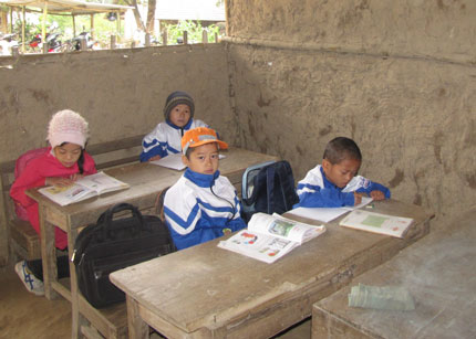 Mặc dù mới được xây dựng nhưng hiện nay, cơ sở vật chất và trang thiết bị dạy học tại điểm trường này vẫn đang ở mức “báo động”. Điểm trường là 1 dãy nhà tạm bợ, gồm 5 phòng học, 1 phòng chờ của giáo viên được dựng lên bằng tranh tre nứa lá, xung quanh được trát bằng đất cao hơn 1 m, nằm trơ trọi giữa khoảng đất rộng chừng 300m2 , không cổng, không tường rào bao quanh. Mỗi phòng học rộng không quá 7m2, không thiết bị chiếu sáng, mỗi căn phòng chỉ đủ kê 2 đến 3 bộ bàn ghế và 1 chiếc bảng. Điểm trường có tổng cộng 6 giáo viên từ trường chính xuống dạy với trên 30 em học sinh từ lớp 1 đến lớp 5. Vào đầu mỗi buổi học, các thầy cô giáo thay nhau xách nước tưới nền nhà cho... đỡ bụi