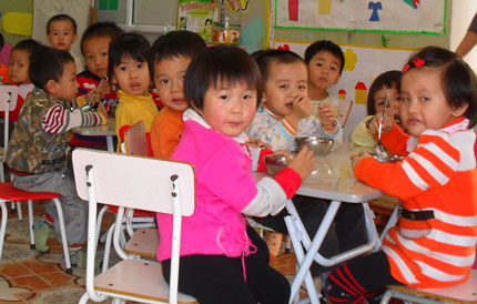 Để các bậc phụ huynh quan tâm chăm sóc sức khỏe cho trẻ, Nhà trường còn phối hợp với các đoàn thể như Hội Phụ nữ, Đoàn thanh niên xã thông qua các buổi sinh hoạt, hội thảo tuyên truyền về kiến thức nuôi con khỏe, dạy con ngoan. 100% các bé đều được khám sức khỏe định kỳ 2 lần/năm. Ngoài ra, để cải thiện bữa ăn của các cháu, các thầy cô còn trồng thêm rau xanh và vận động phụ huynh học sinh nâng mức ăn từ 7 nghìn đồng lên 10 nghìn đồng/ngày/cháu. Nhờ đó, năm học 2010-2011, tỷ lệ trẻ suy dinh dưỡng thấp còi của Trường đã giảm xuống còn 5% (năm học 2009-2010 là 6,8% đối với lớp nhà trẻ, 7% đối với lớp mẫu giáo); đạt trẻ kênh A trên 95%, cao hơn năm học trước 2%; tỷ lệ bé chuyên cần đạt 97%; tỷ lệ huy động trẻ 5 tuổi ra lớp từ năm học 2006-2007 đến nay luôn đạt 100%…