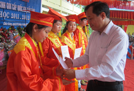 Tại buổi lễ, Ban giám hiệu nhà trường đã tuyên dương và khen thưởng 181 em đạt giải học sinh giỏi cấp quốc qia, cấp tỉnh và 33 giáo viên có thành tích xuất sắc trong năm học 2011-2012.(ảnh)