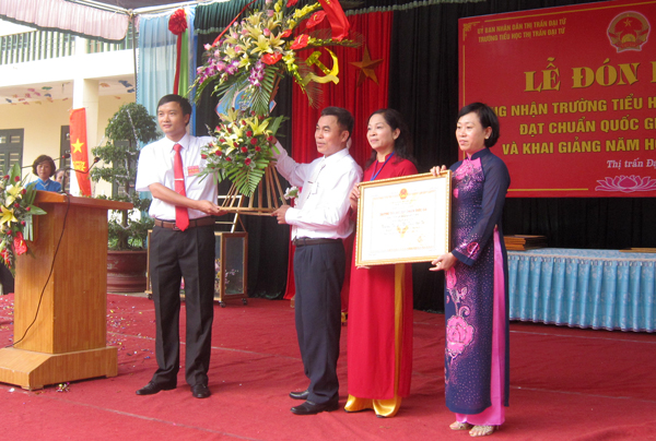 Ngày 1-9, Trường Tiểu học thị trấn Đại Từ đã tổ chức Lễ đón Bằng công nhận trường đạt chuẩn Quốc gia mức độ 2 và khai giảng năm học 2012-2013 (ảnh). Đây là trường học thứ 9 của huyện Đại Từ đạt chuẩn Quốc gia mức độ 2. Tham dự có lãnh đạo Vụ Giáo dục Tiểu học (Bộ Giáo dục và Đào tạo), lãnh đạo Sở Giáo dục, các thầy cô giáo, học sinh và các bậc phụ huynh...
