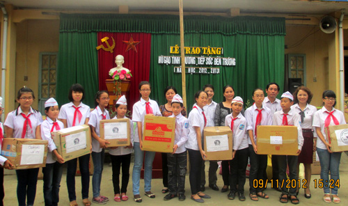 Hưởng ứng cuộc vận động “Giúp bạn đến trường - Cùng hướng tới tương lai” và phong trào xây dựng “Hũ gạo tình thương - Tiếp sức đến trường” chiều ngày 9/11, Trường THCS Nha Trang (T.P Thái Nguyên) kết hợp với hội phụ huynh học sinh tổ chức đến thăm, giao lưu và tặng quà cho các học sinh nghèo của Trường THCS Minh Tiến. Các phần quà gồm: 400kg gạo, 400 bộ quần áo; 300 quyển vở học sinh; 200 quyển sách giáo khoa các loại; 250 chiếc bút viết, ngoài ra còn cặp sách, thước kẻ... (ảnh).