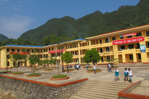Những ngày đầu mới thành lập, trong điều kiện chiến tranh chống đế quốc Mỹ ác liệt, Trường phải sơ tán ở nhiều địa điểm khác nhau từ xóm La Mọ, xã Tráng Xá đến xóm Nà Kháo, xã Phú Thượng, rồi Suối Lũ, thị trấn Đình Cả. Trong thời gian sơ tán, thầy và trò Nhà trường đã phải đi chặt nứa, cắt gianh về làm lớp học, bàn ghế HS đều làm bằng tre nứa. Khó khăn là vậy, song thầy trò Nhà trường đã khắc phục khó khăn để nâng cao chất lượng dạy và học”. Bên cạnh dạy văn hóa, Nhà trường đặc biệt chú trọng giáo dục truyền thống yêu quê hương, đất nước và lý tưởng cách mạng cho HS.