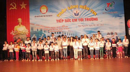 Ông Lê Duy Vỵ: Vì đây là năm đầu tiên thực hiện Chương trình “Thắp sáng niềm tin tiếp sức em đến trường” nên Hội Khuyến học các địa phương chưa thực hiện được việc vận động ủng hộ 1 ngày lương cho HS nghèo như ở T.X Sông Công và huyện Đại Từ. Trước mắt trong năm học tới, Hội Khuyến học tỉnh sẽ tham mưu với Công đoàn ngành Giáo dục - Đào tạo tỉnh và cấp ủy, chính quyền các huyện, thành, thị có chủ trương vận động cán bộ, công nhân, viên chức và giáo viên toàn ngành mỗi người ủng hộ 1 ngày lương để hỗ trợ HS nghèo của tỉnh trong Chương trình “Thắp sáng niềm tin tiếp sức em tới trường” năm 2014 và những năm tiếp theo. Thông qua chương trình, một phần các em HS có hoàn cảnh đặc biệt khó khăn đã nhận được sự giúp đỡ về vật chất và tinh thần trước khi bước vào năm học mới, qua đó củng cố thêm niềm tin cho các em. Đồng thời cũng thông qua chương trình đã phát động và cổ vũ tinh thần hiếu học trong nhân dân và đánh thức tấm lòng nhân ái của cộng đồng xã hội.