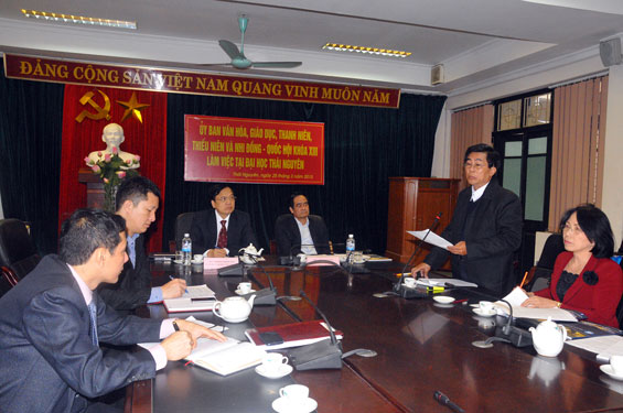 Ngày 25-3, Đoàn cán bộ Ủy ban Văn hóa, Giáo dục, Thanh thiếu niên và Nhi đồng Quốc hội (khó XIII) do đồng chí Lê Văn Học, Phó Chủ nhiệm Ủy ban làm Trưởng đoàn đã có buổi làm việc với lãnh đạo Đại học Thái Nguyên (ĐHTN) và các trường thành viên.