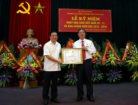 Nhân dịp này, Trường Cao đẳng Thương mại và Du lịch đã vinh dự được đón nhận Bằng khen của UBND tỉnh (ảnh); một số tập thể, cá nhân đã được nhận Bằng khen của Thủ tướng Chính phủ, Bộ Công thương và Nhà trường.