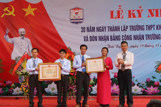 Tại buổi Lễ, Trường THPT Khánh Hòa và 3 cá nhân có thành tích xuất sắc trong quá trình xây dựng và phát triển Nhà trường giai đoạn 1985-2015 đã được Bộ Giáo dục và Đào tạo tặng Bằng khen. Dịp này, Nhà trường cũng vinh dự được đón nhận Bằng công nhận trường đạt chuẩn Quốc gia (ảnh).
