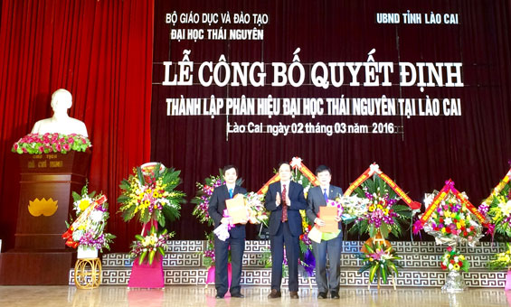 Được sự nhất trí của Bộ Giáo dục và Đào tạo, căn cứ Quy chế hoạt động của đại học vùng, ngày 2-3, tại phường Bình Minh, T.P Lào Cai (Lào Cai), Đại học Thái Nguyên đã tổ chức lễ công bố Quyết định thành lập Phân hiệu tại tỉnh Lào Cai.