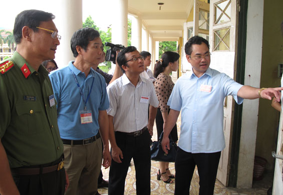 Đó là ý kiến chỉ đạo của đồng chí Trịnh Việt Hùng, Phó Chủ tịch UBND tỉnh, Trưởng ban Chỉ đạo Kỳ thi THPT Quốc gia 2016 của tỉnh nhắc nhở các cán bộ, giáo viên làm nhiệm vụ tại các điểm thi khi đoàn của Ban Chỉ đạo đi kiểm tra công tác chuẩn bị cho kỳ thi THPT Quốc gia 2016 vào sáng ngày 30-6. Đây cũng là ngày mà các thí sinh đến điểm thi làm thủ tục dự thi.