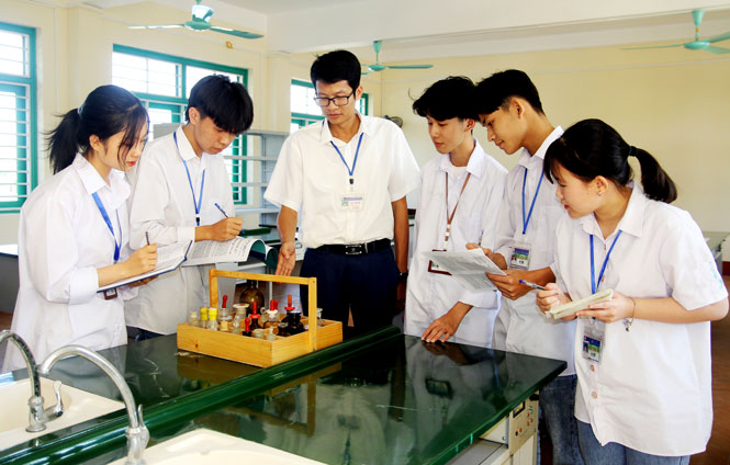 Học đi đôi với thực hành, đó là phương châm dạy và học gắn với thực tiễn mà Trường đã tích cực đổi mới. Trong ảnh: Giờ thực hành tại phòng thí nghiệm của Trường