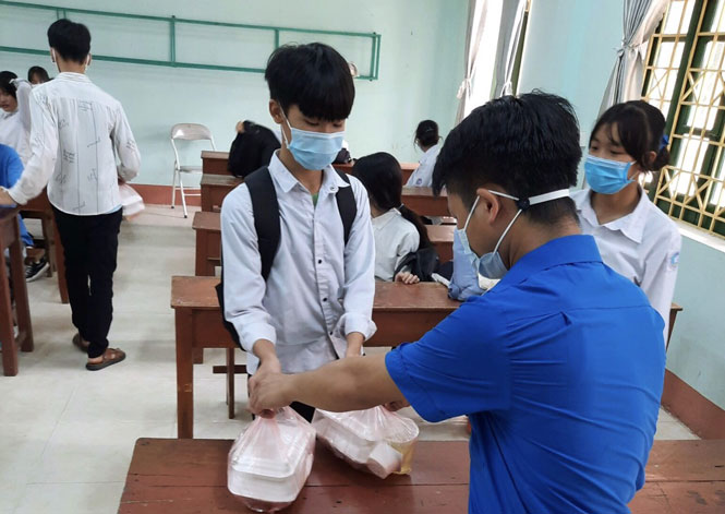 Thí sinh thuộc các xã vùng giãn cách phòng, chống dịch của huyện Phú Bình được phục vụ ăn, nghỉ tại điểm thi Trường THPT Lương Phú.