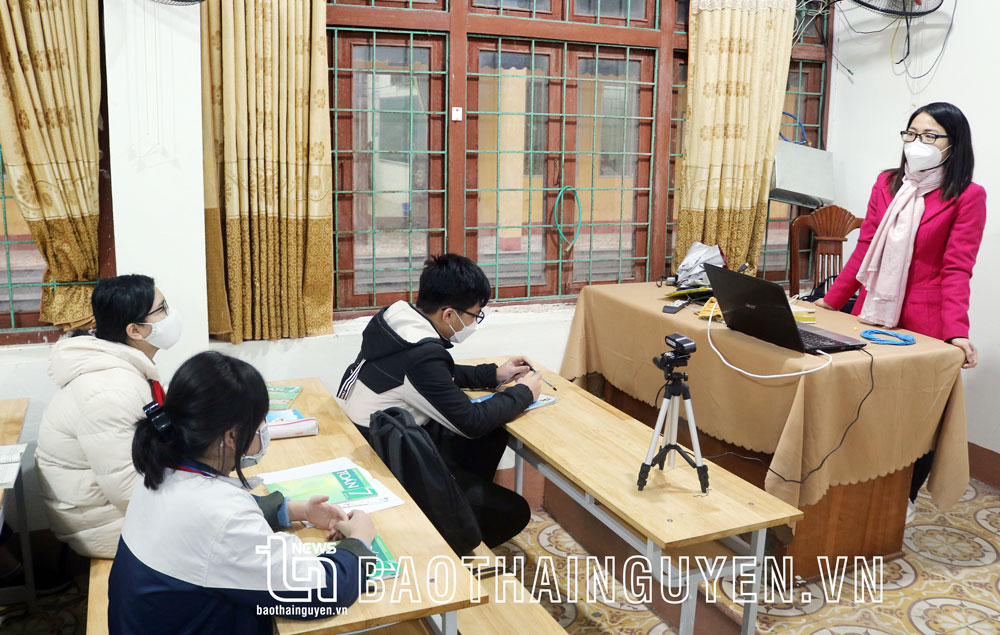 Hiện nay, trên địa bàn T.P Thái Nguyên, T.P Sông Công, T.X Phổ Yên và các huyện Phú Lương, Đại Từ, Định Hóa, một số trường đã tiến hành dạy học song song kết hợp trực tiếp và trực tuyến để bảo đảm 100% học sinh đều được học đúng thời khóa biểu. Một số trường còn khó khăn về thiết bị dạy học trực tuyến, giáo viên đã soạn tài liệu, học liệu gửi đến từng học sinh phải học tại nhà để hoàn thành nội dung bài giảng. 100% trường học đều thực hiện phân ca, phân luồng giờ tan học bảo đảm giãn cách và tổ chức theo dõi, kiểm soát phòng dịch COVID-19 theo lớp, nhóm học sinh.