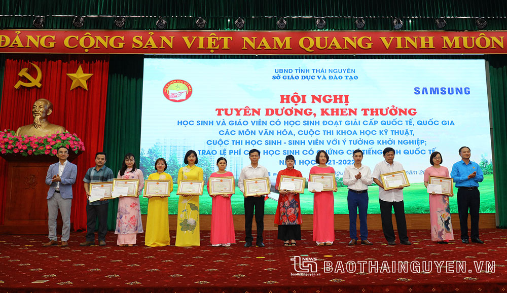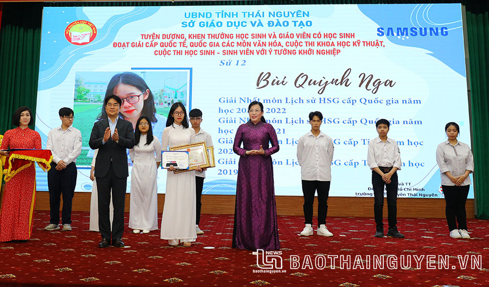 Tại Hội nghị, UBND tỉnh tặng Bằng khen và khen thưởng các em HS có thành tích cao trong các cuộc thi, GV có HS đạt giải cao; Liên đoàn Lao động tỉnh tặng quà cho đoàn viên là GV có HS đoạt giải trong các kỳ thi chọn HS giỏi cấp quốc gia.