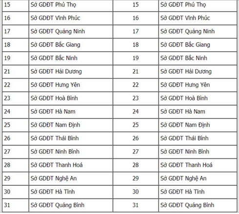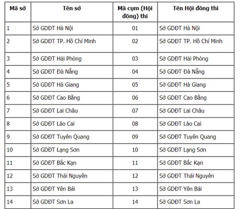 Dưới đây là danh sách 64 cụm thi, các thí sinh theo dõi để điền thông tin được chính xác nhất: