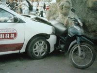 Ngay sau khi tai nạn xảy ra, lái xe taxi đã bỏ trốn, người điều khiển xe máy phải vào viện trong tình trạng bị thương nặng.