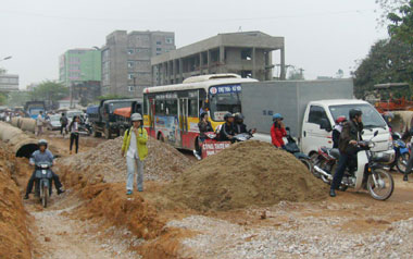 Làm đường thường gây ùn tắc giao thông, nhưng nếu cơ quan chức năng và đơn vị thi công có biện pháp điều tiết giao thông qua đoạn này hợp lý thì sẽ đỡ khổ cho dân.