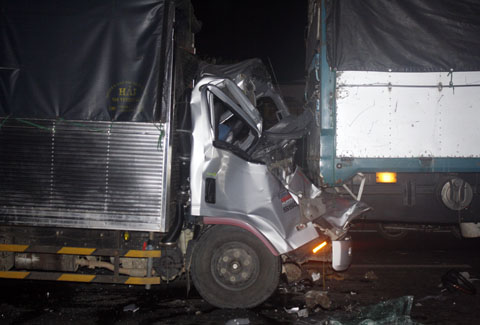 Rạng sáng nay (7/5), xe tải đang chạy trên quốc lộ 1A, hướng từ ngã tư An Sương về Suối Tiên đã tông thẳng vào đuôi xe tải khác đang dừng đèn đỏ khiến tài xế bị kẹt cứng trong cabin.