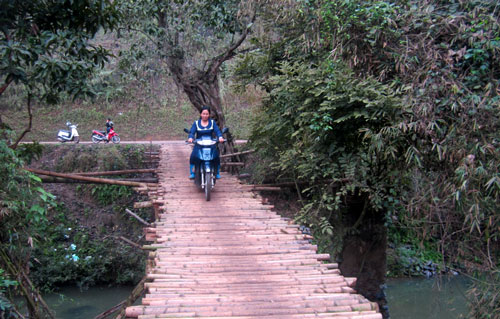Theo quan sát của chúng tôi, hầu hết những cây cầu tạm trên địa bàn xã Phủ Lý đều được lắp ghép từ những cây tre, ván gỗ để làm thành một cây cầu với bề rộng mặt cầu chưa đầy 1m, bắc chơi vơi qua dòng kênh Đu với độ cao từ cầu đến mặt nước gần 6m, hai bên cầu đều không có tay vịn, phía dưới dòng kênh là những tảng đá lớn. Ông Phạm Văn Lương cho biết thêm: Chúng tôi đã nhiều lần có ý kiến lên chính quyền địa phương những đều nhận được câu trả lời đợi kinh phí từ cấp trên. Do đó, để tránh tình trạng cầu gẫy, sập, mỗi năm người dân đã đóng góp tiền, ngày công lao động để sửa cầu 2 đến 3 lần và làm lại cầu một lần vào dịp cuối năm. Vào mùa mưa lũ, nước dâng cao cuốn trôi cả cây cầu, hầu hết trẻ con đều phải nghỉ học cho đến khi dựng lại được cầu.