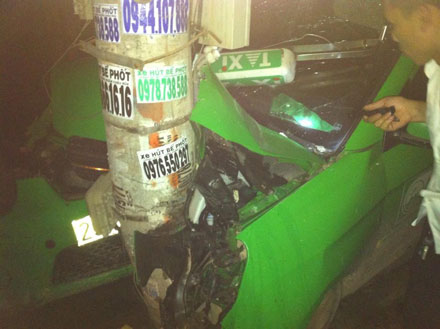 Khoảng 2h sáng nay 10/4, chiếc xe taxi 4 chỗ của hãng taxi Mai Linh đang phóng với tốc độ cao trên đường đã tông thẳng vào cột điện khiến 4 người ngồi trên xe bị thương nặng.